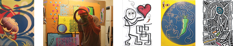 John Bambino is a local Rogers Park artist that is known for his angry rabbit character and carrot on the string. He also does other mediums. Www.Johnbambino.wordpress.com