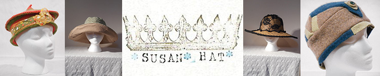 *SUSAN*HAT*s are one-of-a-kind pieces made from recycled materials, such as felted sweaters, clothing of other fabrics, and reformed rescued vintage hats.